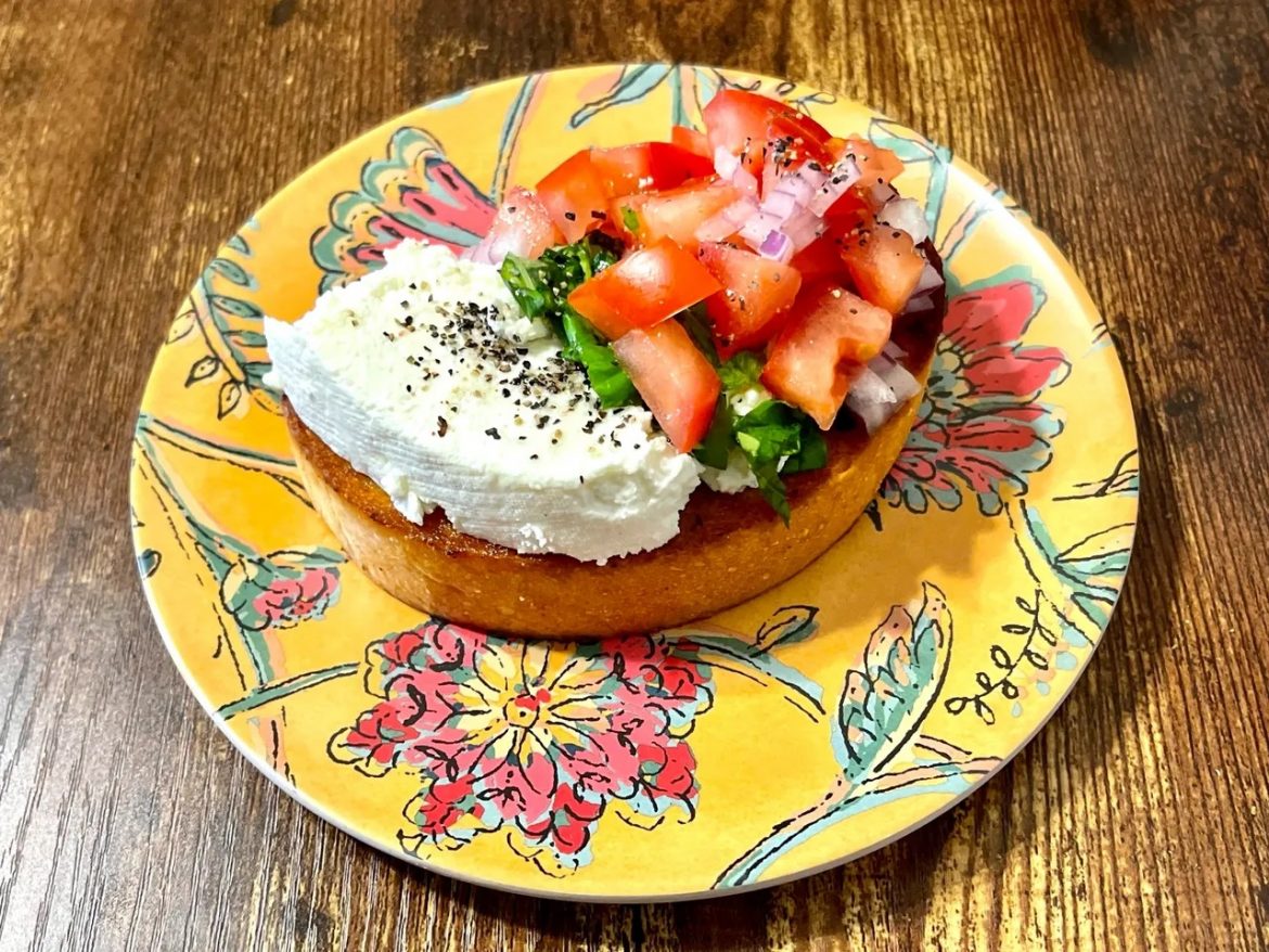 Refreshing Bruschetta, bursting with the flavors of basil, tomato, and olive oil is ready to eat.